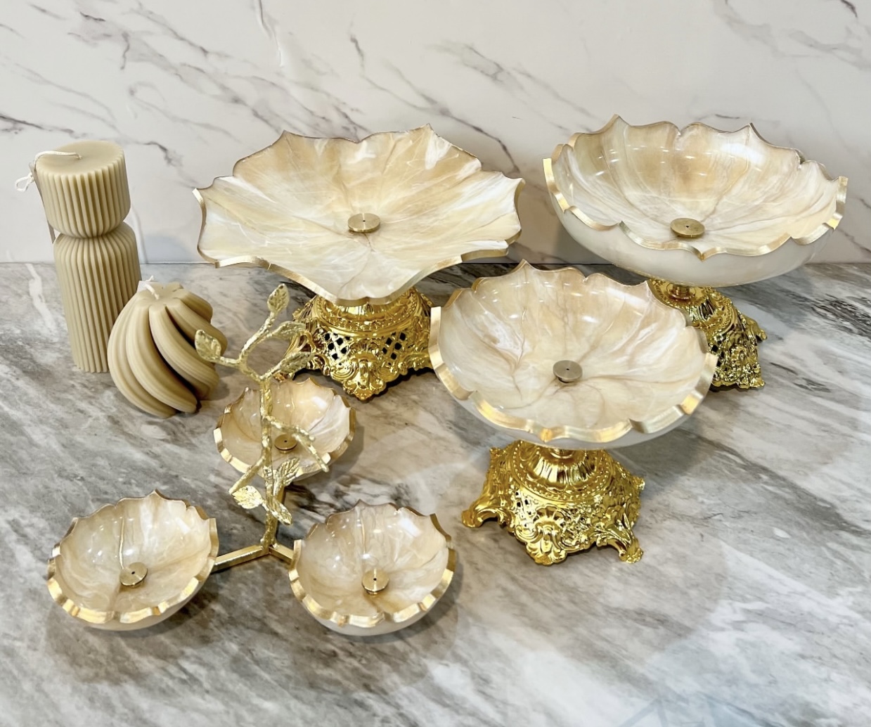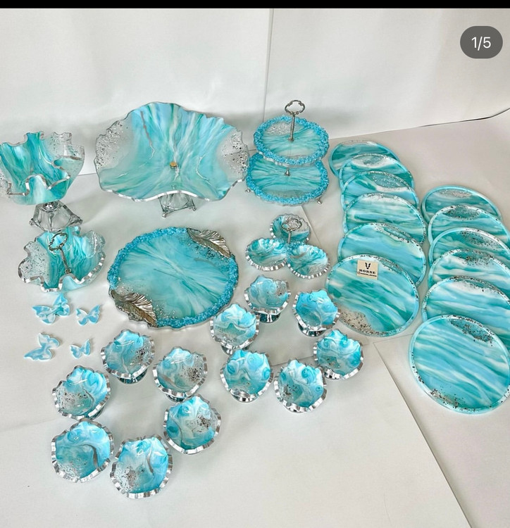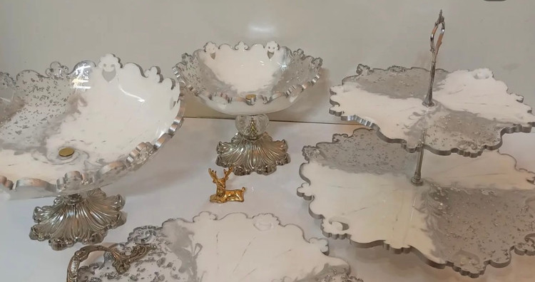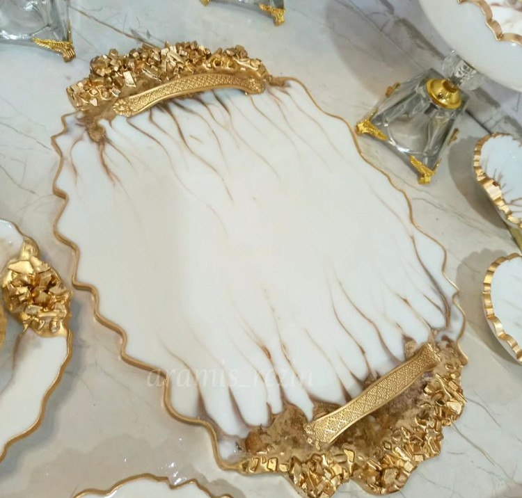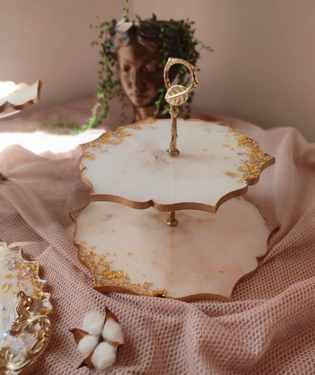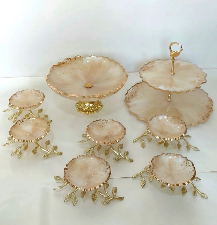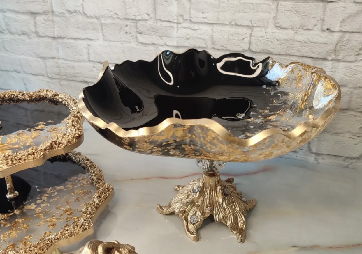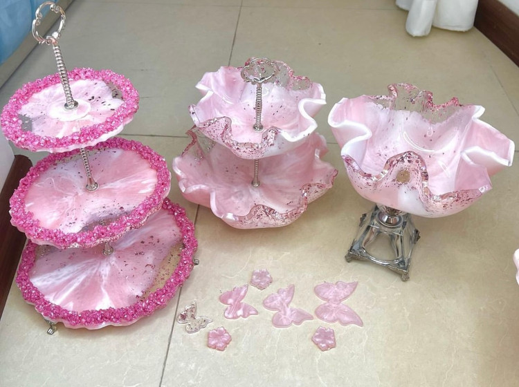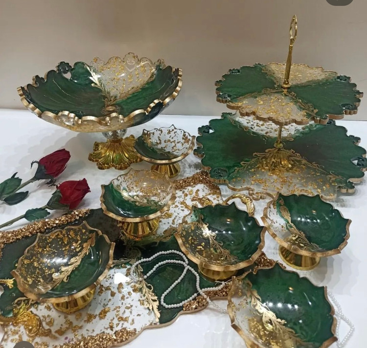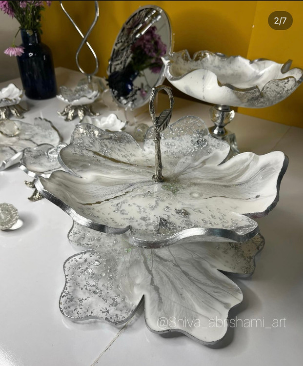 ظروف رزینی جادستمال جا سطل زباله شیرینی خوری دوطبقه میوه خوری